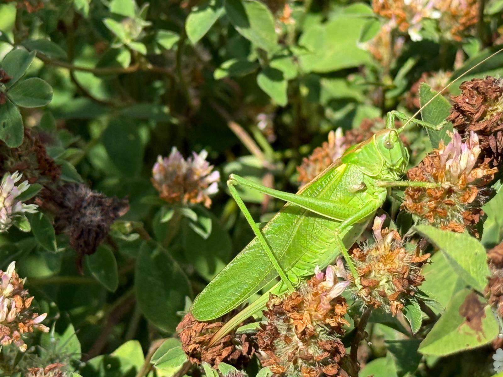 v.l.n.r. Mitte: Feldheuschrecke, grünes Heupferd, Wespenspinne