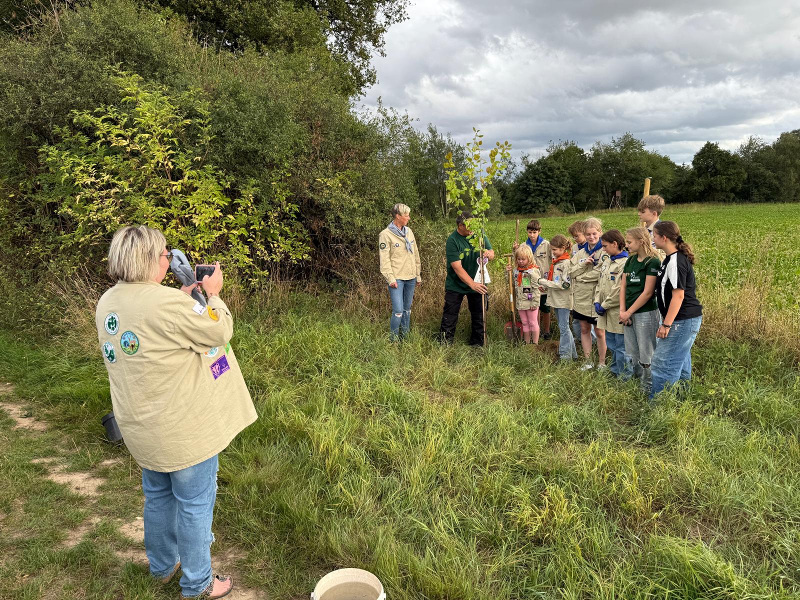 Die Uedemer Pfadfinder wurden für eine besondere Aktion ausgewählt: Sie erhielten die Nominierung, einen Baum zu pflanzen. Da die Pfadfinder jedoch über kein eigenes Grundstück verfügen, haben sie sich an mich gewandt und angefragt, ob sie im Rahmen ihrer Tätigkeit als Blühpaten einen Baum an der Bienenweide pflanzen dürfen.