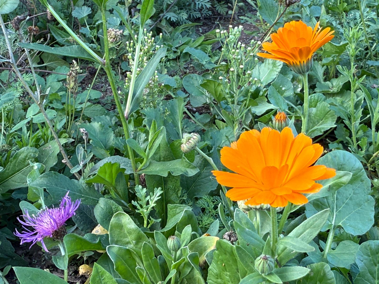 v.l.n.r. unten: Wiesenflockenblume, Färberdistel, Fenchel