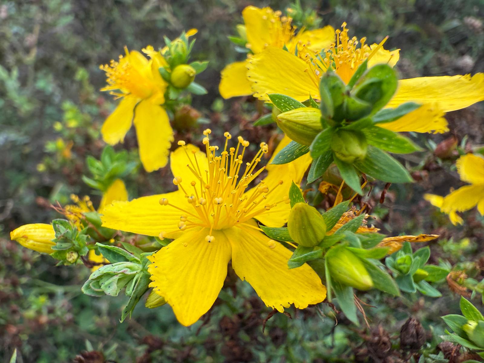 v.l.n.r.: unten: Klatschmohn, Johanniskraut, Wiesen-Flockenblume